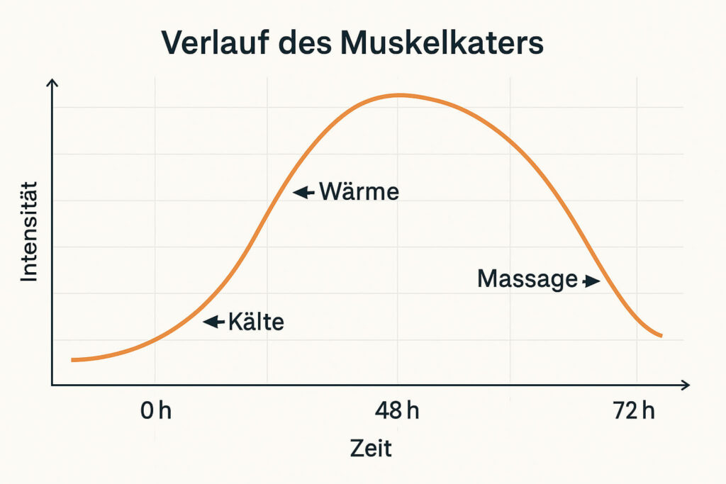 Zuerst einmal: Muskelkater (oft auch DOMS genannt: delayed onset muscle soreness) entsteht typischerweise 24 bis 48 Stunden nach ungewohnter oder intensiver Belastung. Er ist nicht das Ergebnis von Milchsäure, sondern von Mikroverletzungen in Muskelfasern und Entzündungsprozessen während der Regeneration.